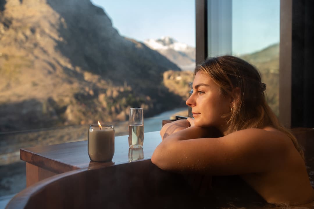 Designed for couples or individuals seeking the very best in relaxation, our Oval tubs offer 60 minutes of uninterrupted tranquillity. Each private cedar tub is set on a secluded deck overlooking the Shotover River and surrounding alpine peaks – the perfect backdrop for a deeply restorative soak.